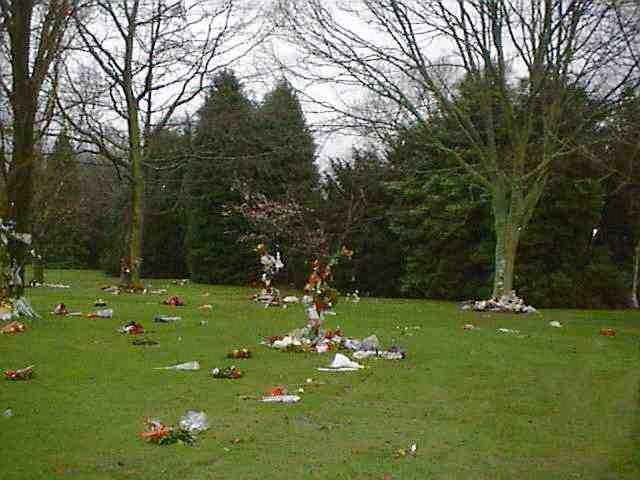 This is Plot 42 in the Garden of Remembrance  at the Gwent Crematorium where Anne McGuire's ashes are buried. The plots are marked by 4 numbered trees at each corner. This photo is taken across the diagonal line.