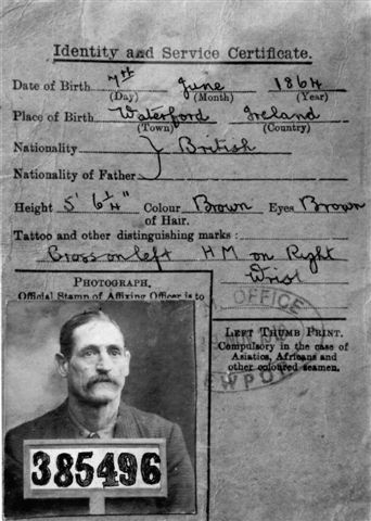 2nd page of Merchant Seaman's card "I have over-written the relevant information so that it is highlighted"