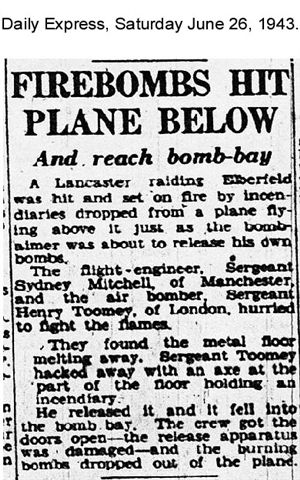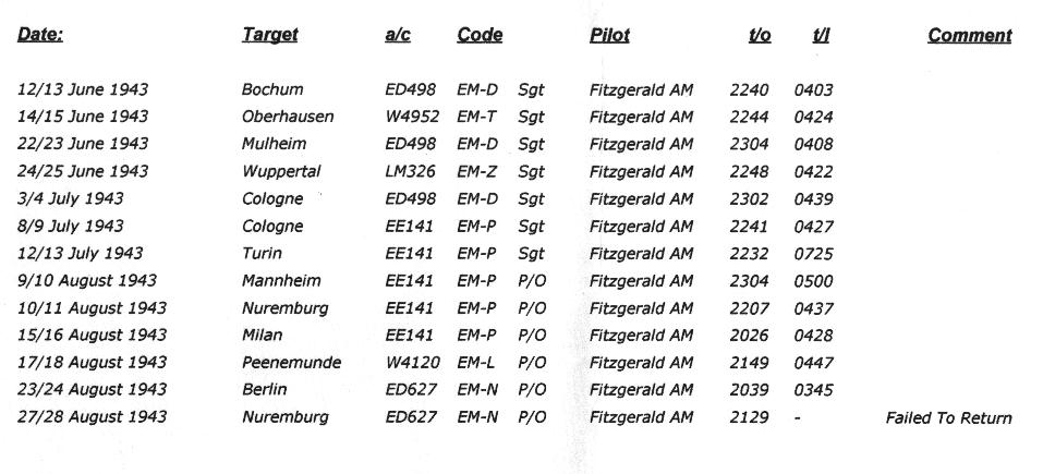 The names of the 5 crew in the photo above are, Top, left to right, Sgt. W.W. Addison, Sgt. H. A. Toomey, Sgt. C. H. Pratt Bottom, Sgt. A. M. Fitzgerald, Sgt. J. Goodwin.