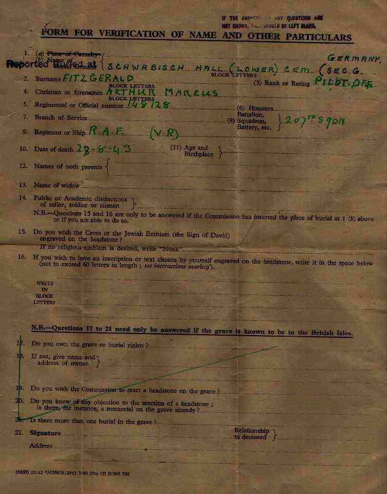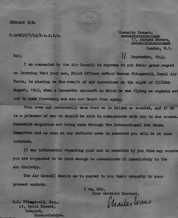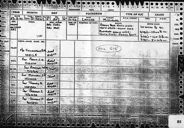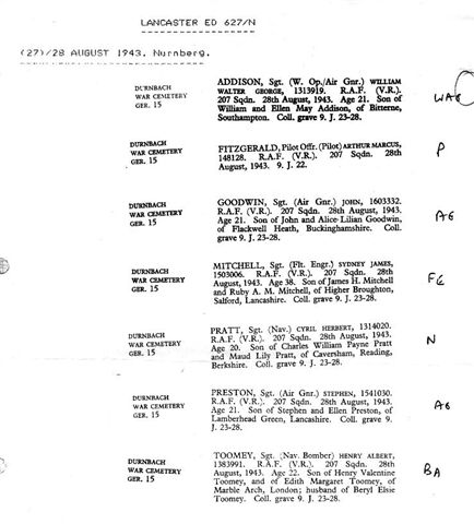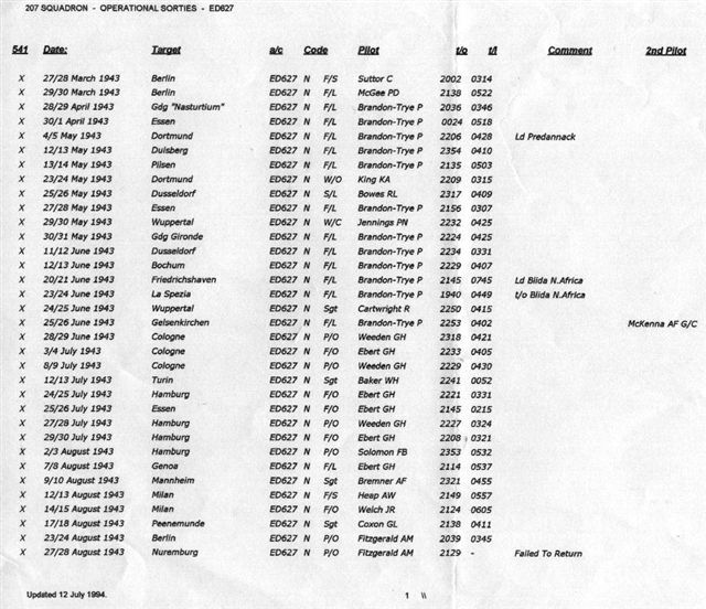 These are the RAF loss cards (front and back) for Lancaster ED627 and the list of the crew.