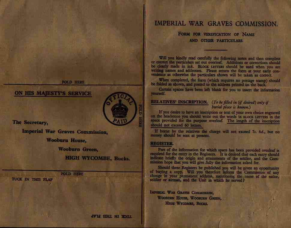 This is a letter from the Imperial (Commonwealth) War Graves Commission.