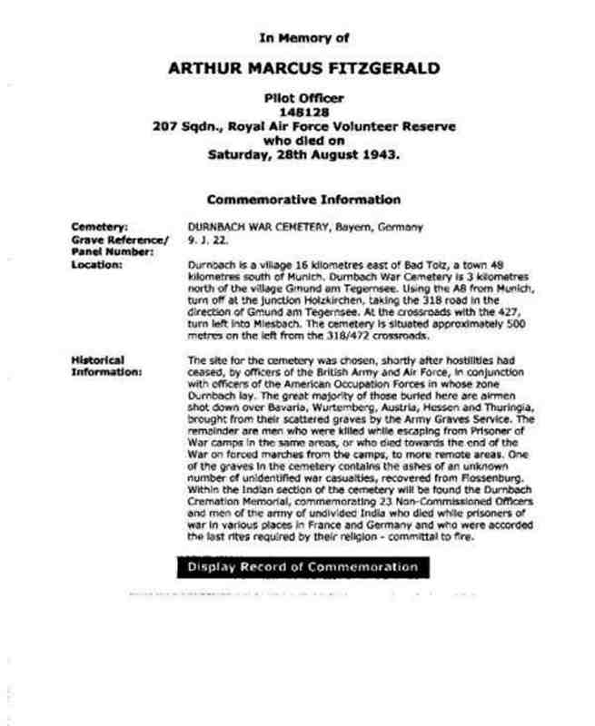 Arthur's grave in the Durnbach War Cemetery, Germany.
