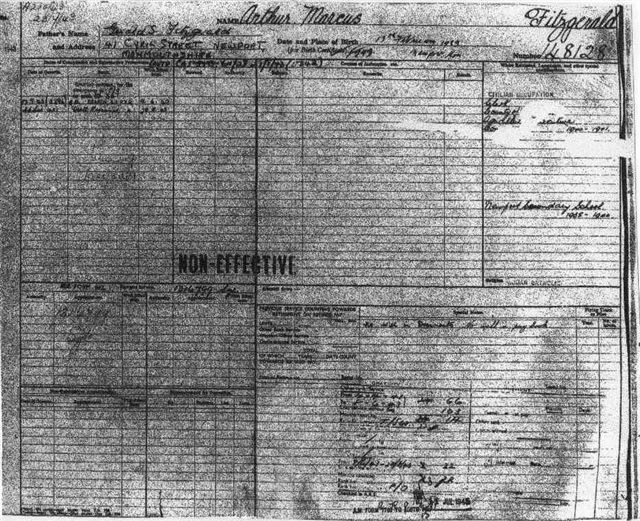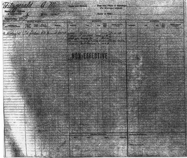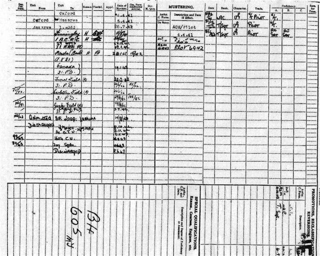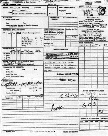 Arthur's RAF service records. The stamp "Non - Effective" means that he is dead.