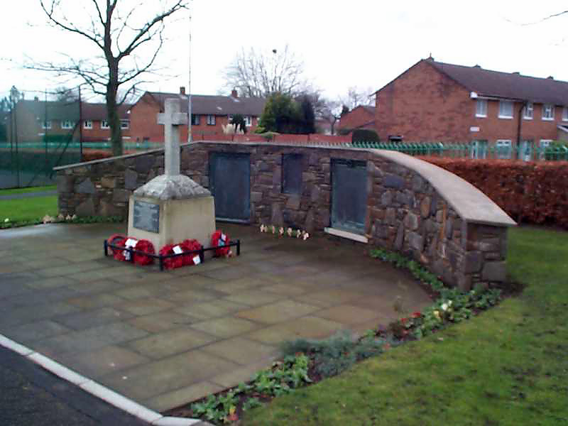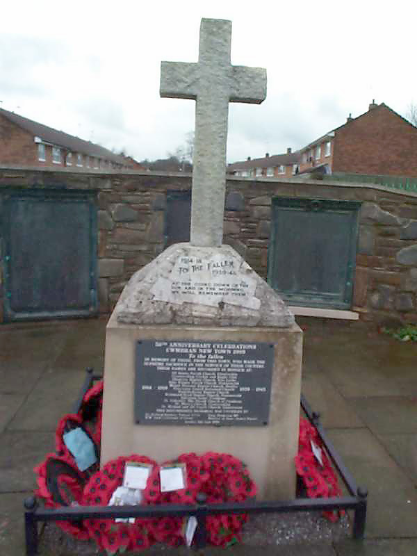 Memorial in Cwmbran park. The plaques laid into the wall list the names of