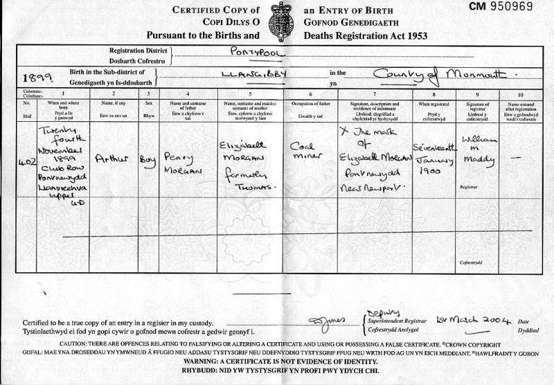 in Arthur's case the mother Elizabeth who has registered the other birth's in