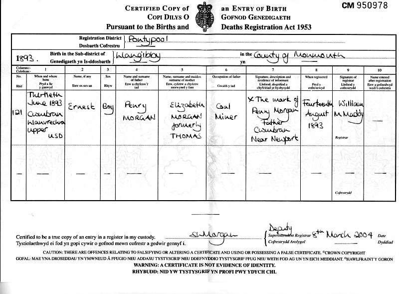 found relevant documents relating to the Morgan family. Any birth, marriage or