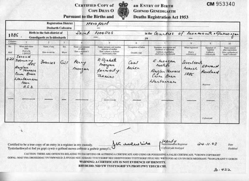 maiden name as Thomas. On this certificate, the time of birth is given and we