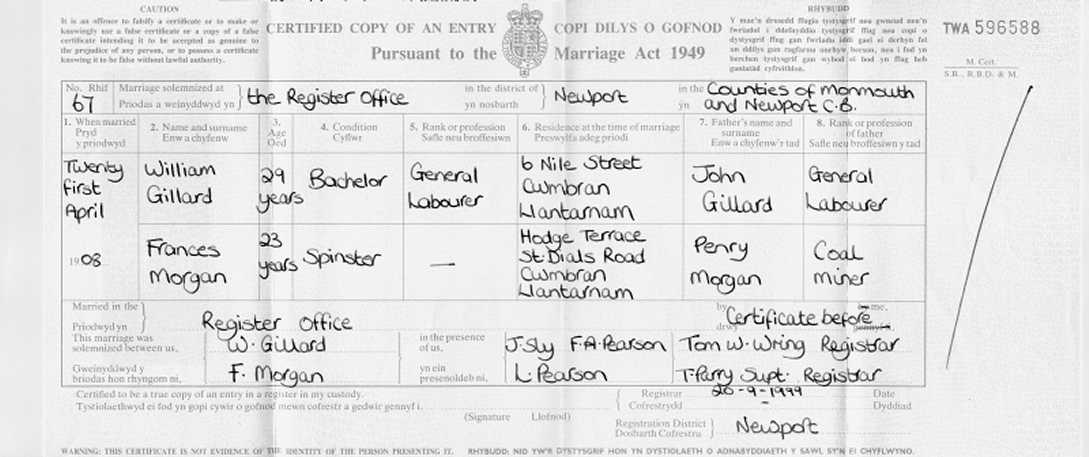 have obtained a marriage certificate for a Pendry Morgan and a Elizabeth Brigs