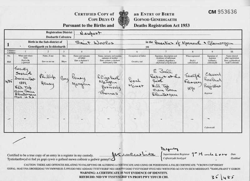 born in the Pontypool workhouse at about the time we think that Penry was born