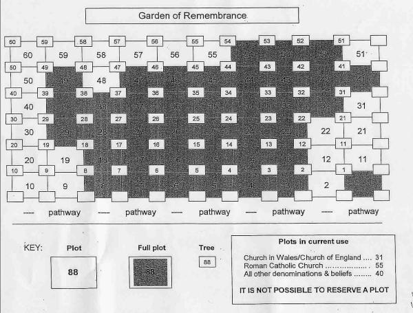 the Garden Of Remembrance at the Gwent Crematorium in Croesyceilog, Gwent showing the plot number's. Each plot has a tree at