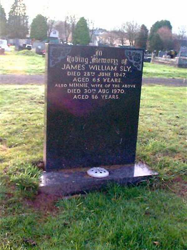 the Cwmbran cemetery lie Minnie Sly (nee Morgan) and her husband James, in