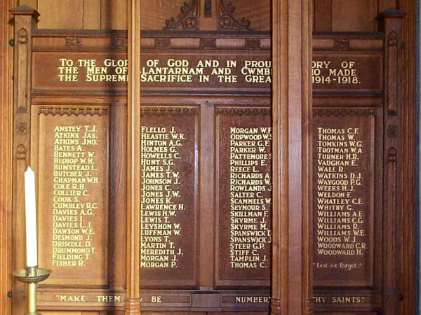 in the Great War. It is now housed in St. Gabriel's church Cwmbran.