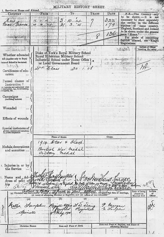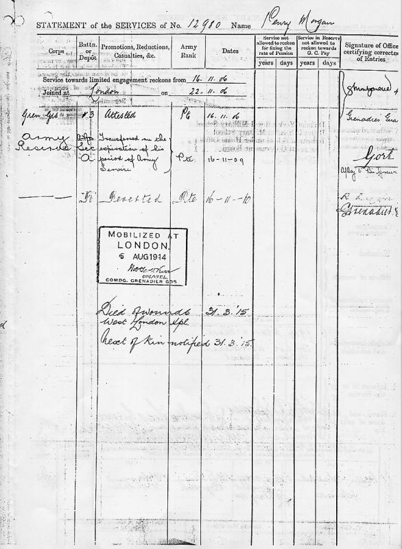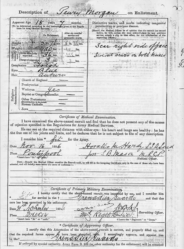 of the Military service record of Pte Penry Morgan