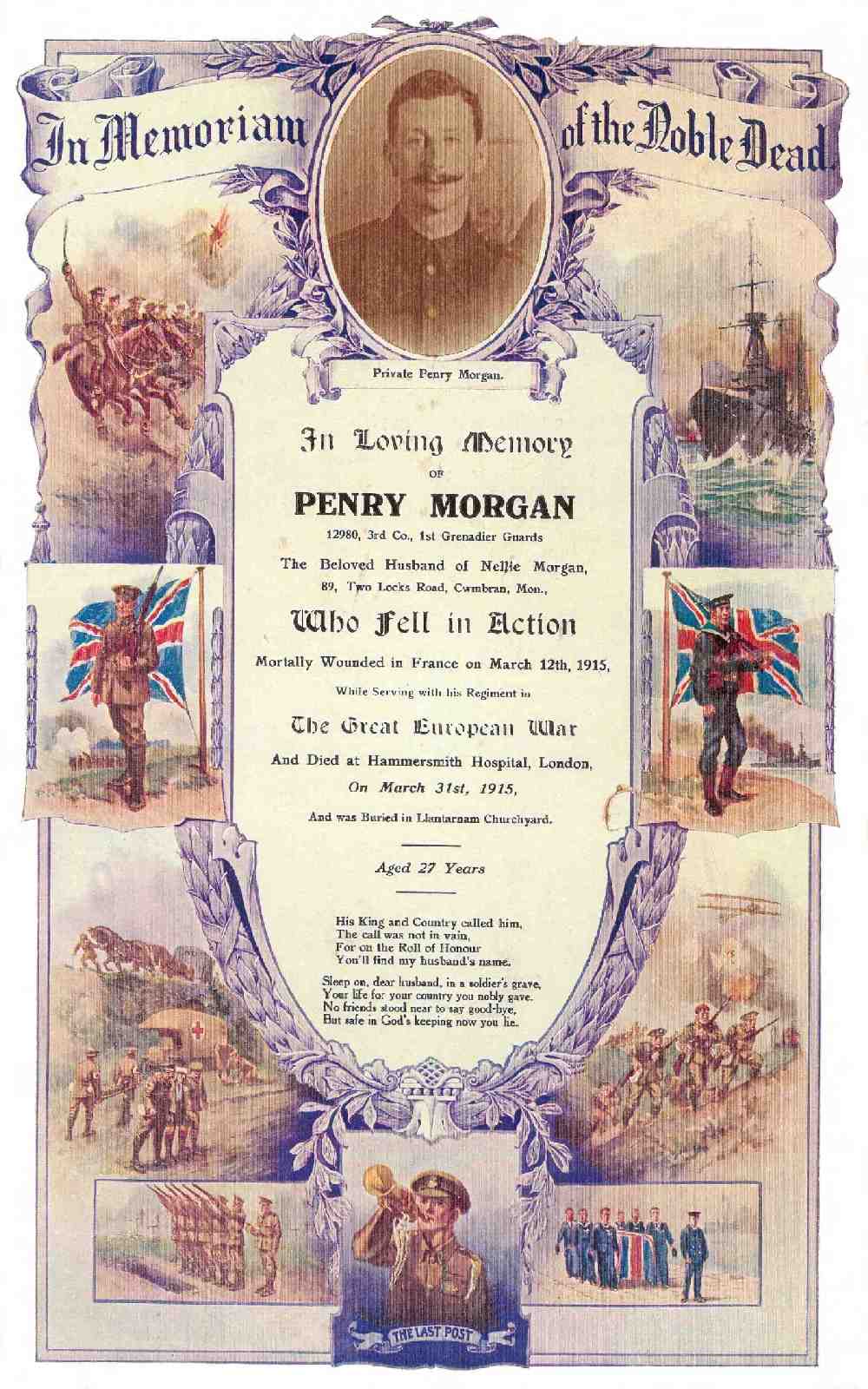 Road" and "In memory of Private Penry Morgan, who died nobly for his country,