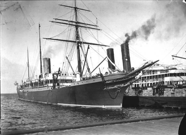 From a search of the internet it has been discovered that this ship was built in 1899 (see details below) and went to Australia where it was used as a troop transport ship to ferry Australian soldiers to China to take part in quelling the Boxer rebellion. A further photograph has been obtained from the internet of the ship tied up