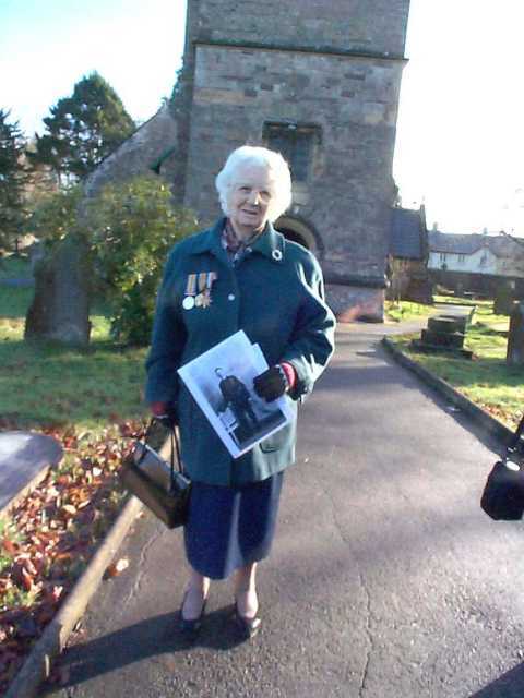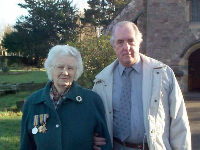 Doreen with a photo of her father and in both photograph's she is wearing her fathers medals.
