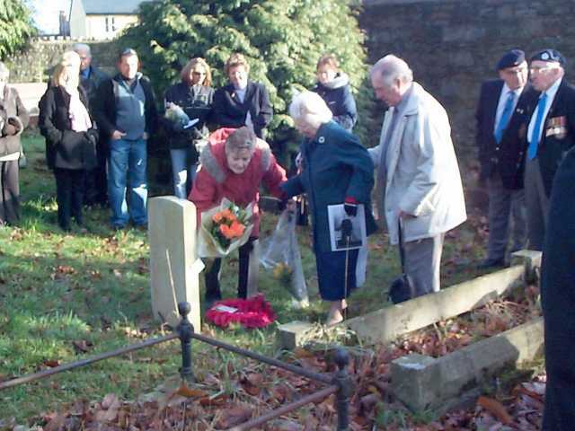 Doreen lays her flower's on her father's grave supported by June McGuire and Allen Morgan