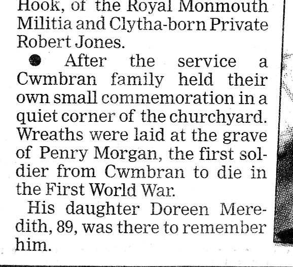 Below are some photo's taken when Cadesa (Cwmbran and District Ex-Servicemen's Association) paraded to Penry's grave and a short report from the South Wales Argus about the ceremony.