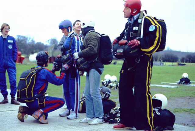 Gods and Goddess are used to test the Partenavia for the first time with Static Line jumping. Charlie Field Roy Harvey Gerry Nelson